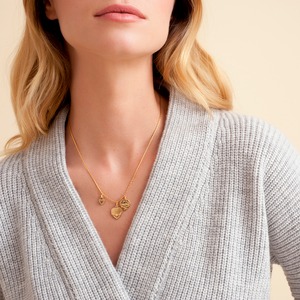 可愛らしいハートモチーフのネックレス。 異なるデザインの可愛いハートの組み合わせ。 ハートはトップに付いておりアジャスターが前に回りません。 スネイクチェーンの為絡まりにくいです。 24金コテーィング。 全長約45cm(内アジャスター3cm)