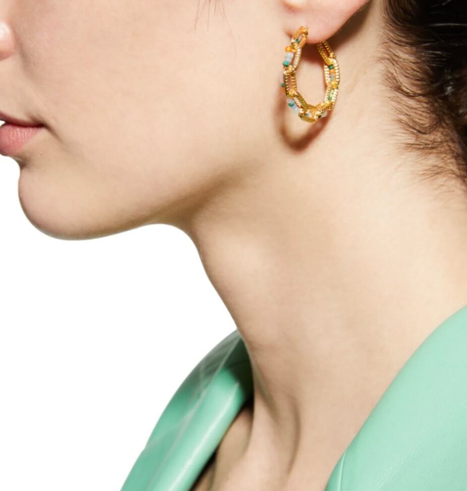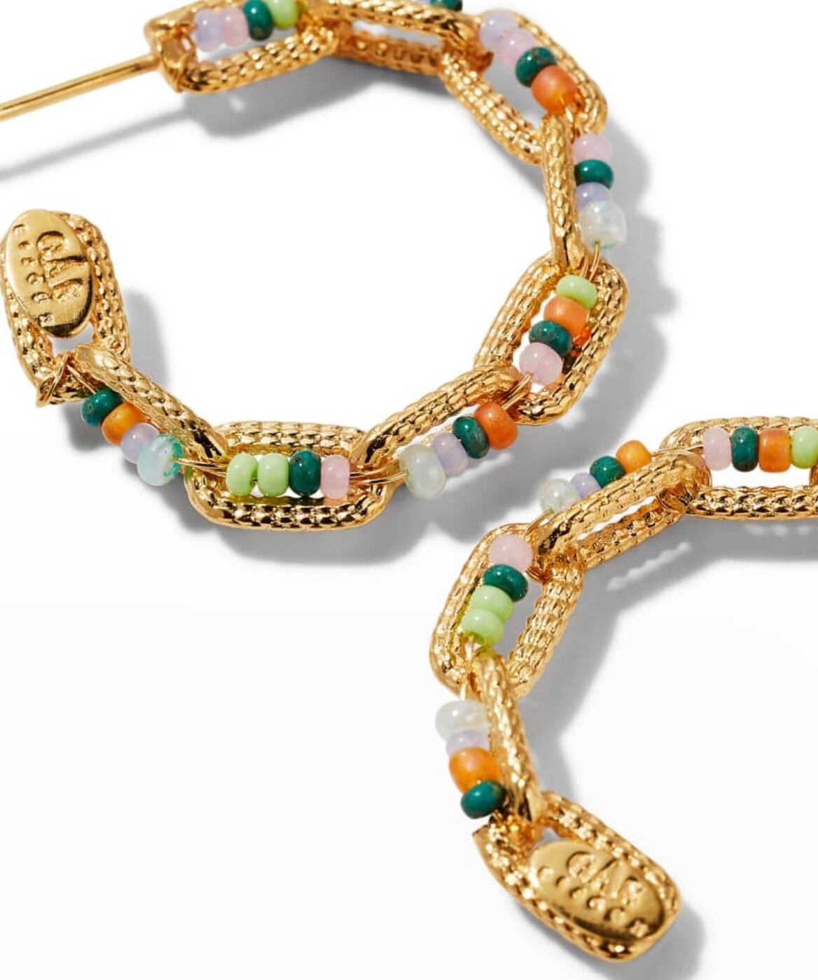 可愛い色合いのビーズとゴールドの組合せのフープピアス。 ポストはシルバーに24金、それ以外は真鍮に24金です。 直径約3cm