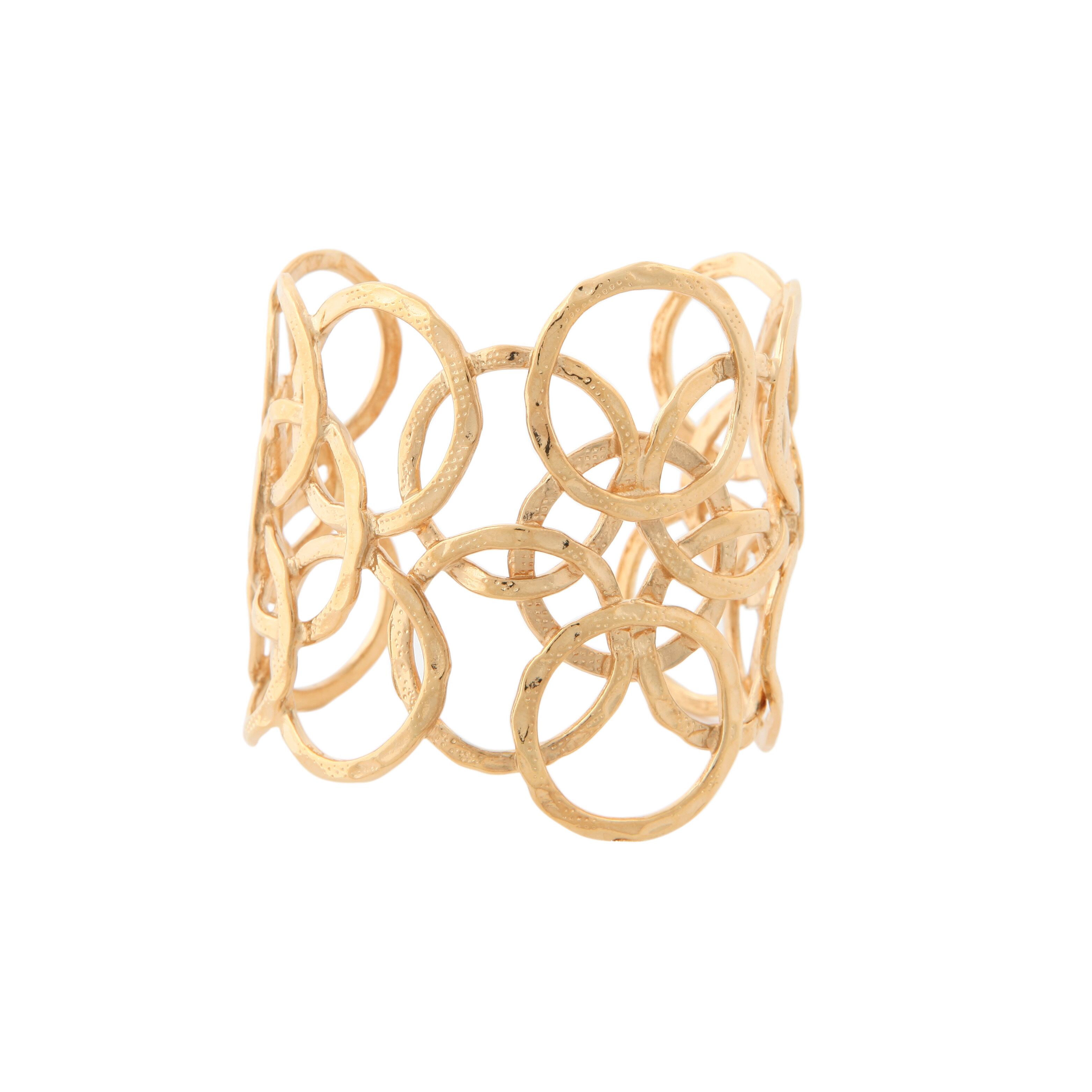透け感のある大振りゴールドバングル。 柔らかくサイズを調整して頂けます。 洋服の上からつけても素敵です。 高さ6.5cm 全長14cm 24金コーティング