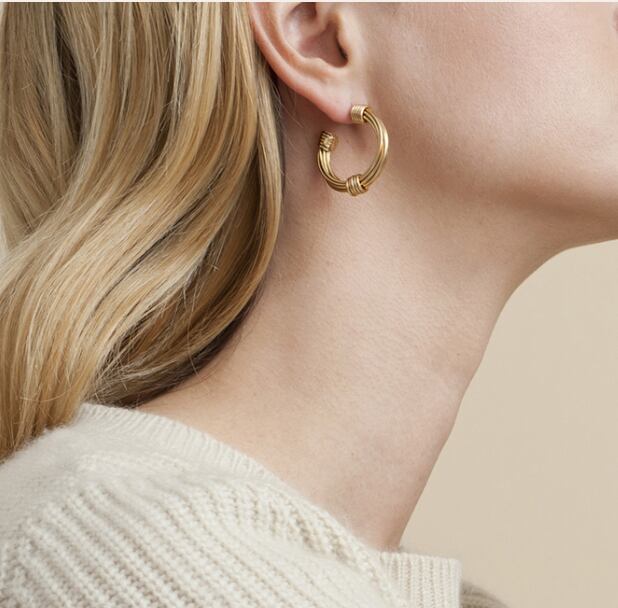 どんなスタイルにも合う24金のフープピアス。 ポストはシルバーに24金コーティング、それ以外は真鍮に24金コーティングです。 直径約2.5cm
