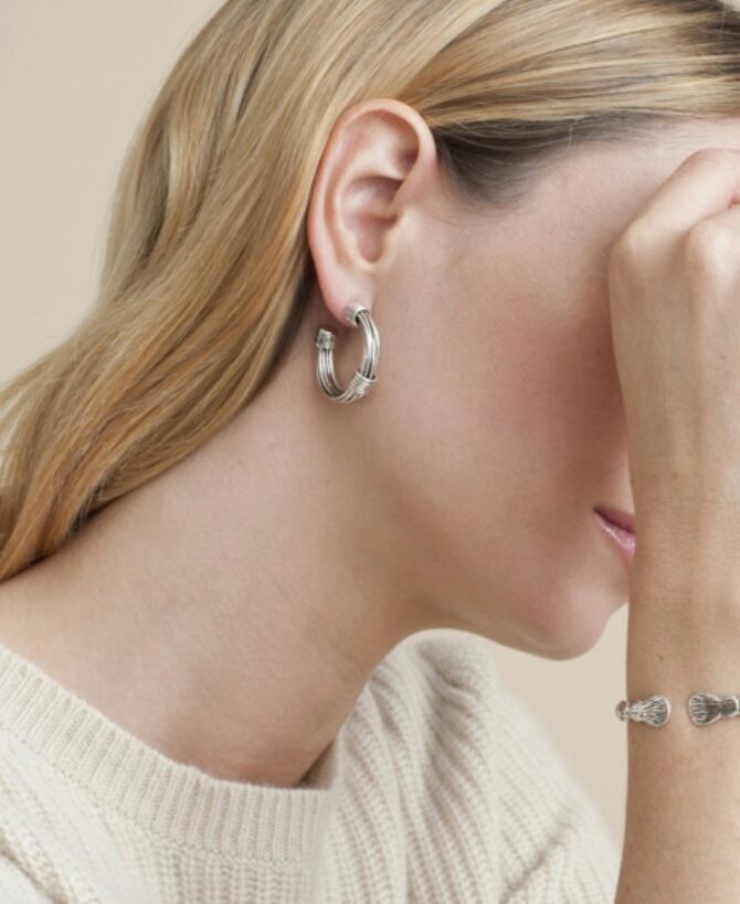 どんなスタイルにも合うシルバーフープピアス。 ポストはシルバー、それ以外は真鍮にシルバーコーティングです。 直径約2.5cm
