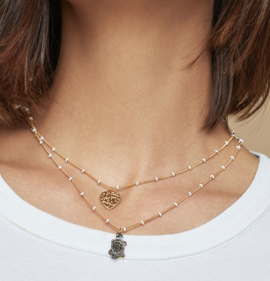 大人気ハートネックレスシリーズに新たに登場した一粒ハートのネックレス。 ボールチェーンが女性らしさを演出します。 (着画のボールチェーンの色は別色です) 長さ40cm ハート長さ1.5cm