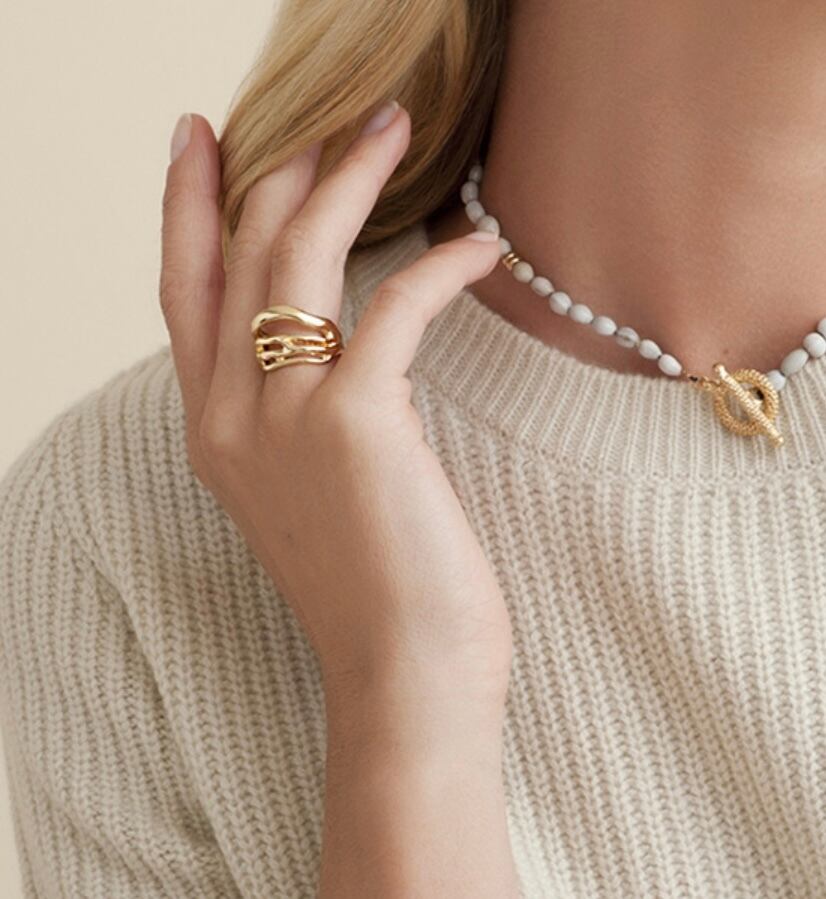 珊瑚モチーフのリングです。 絶妙な曲線と太さが美しいデザイン。 真鍮に厚みのある24金コーティング。 サイズ感は若干調節可能です。