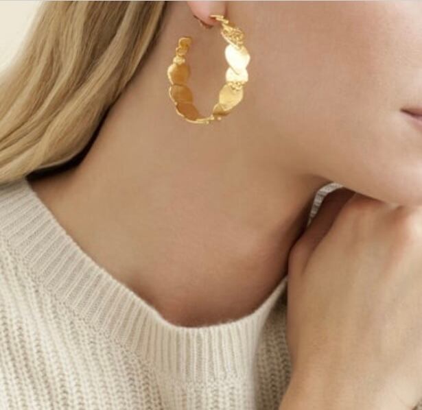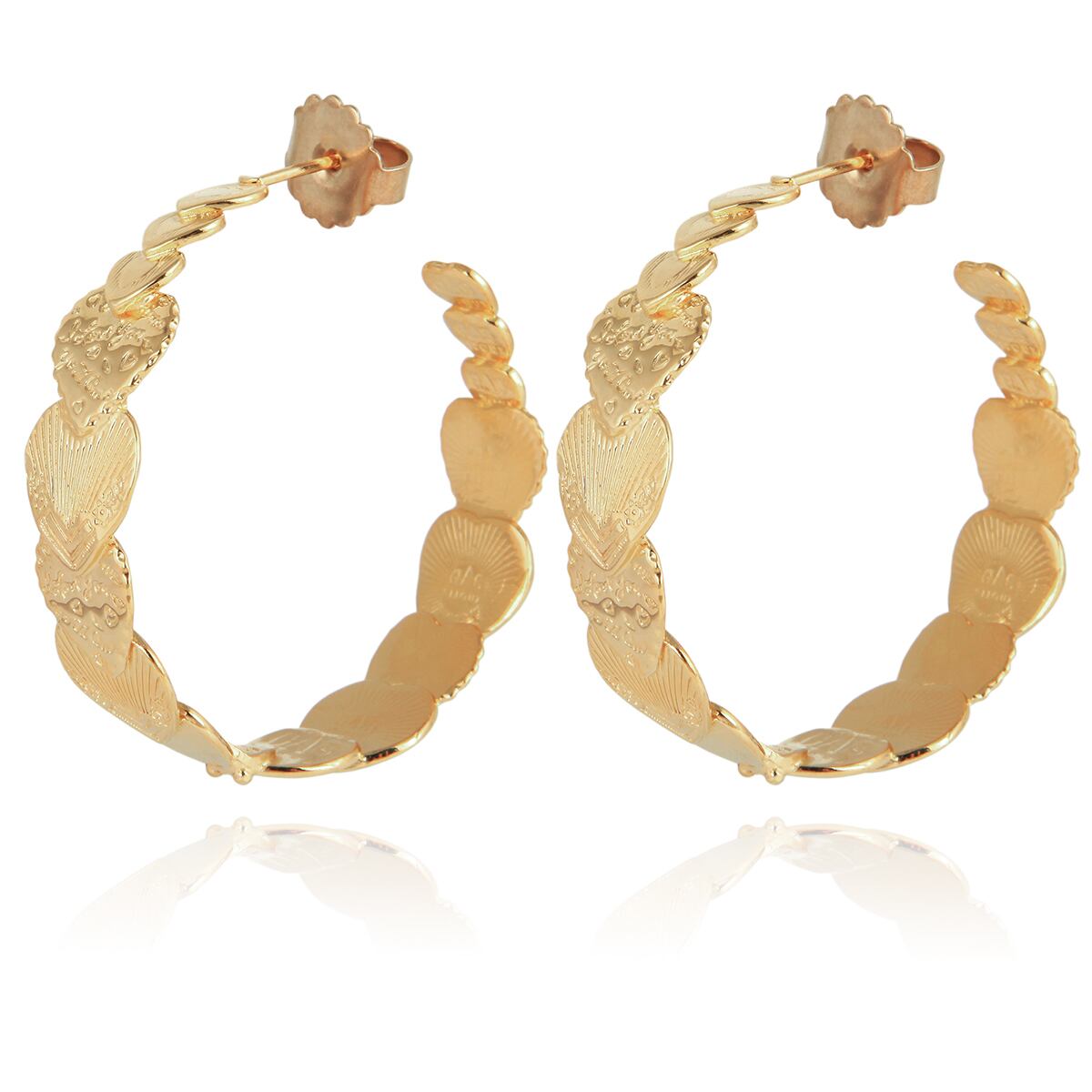 大人気のハートコレクションのフープピアスです。 大小2種類、こちらは大きい方です。 デザインの異なるハートが連なります。 ポストはシルバーに24金、その他は真鍮に24金コーティングです。