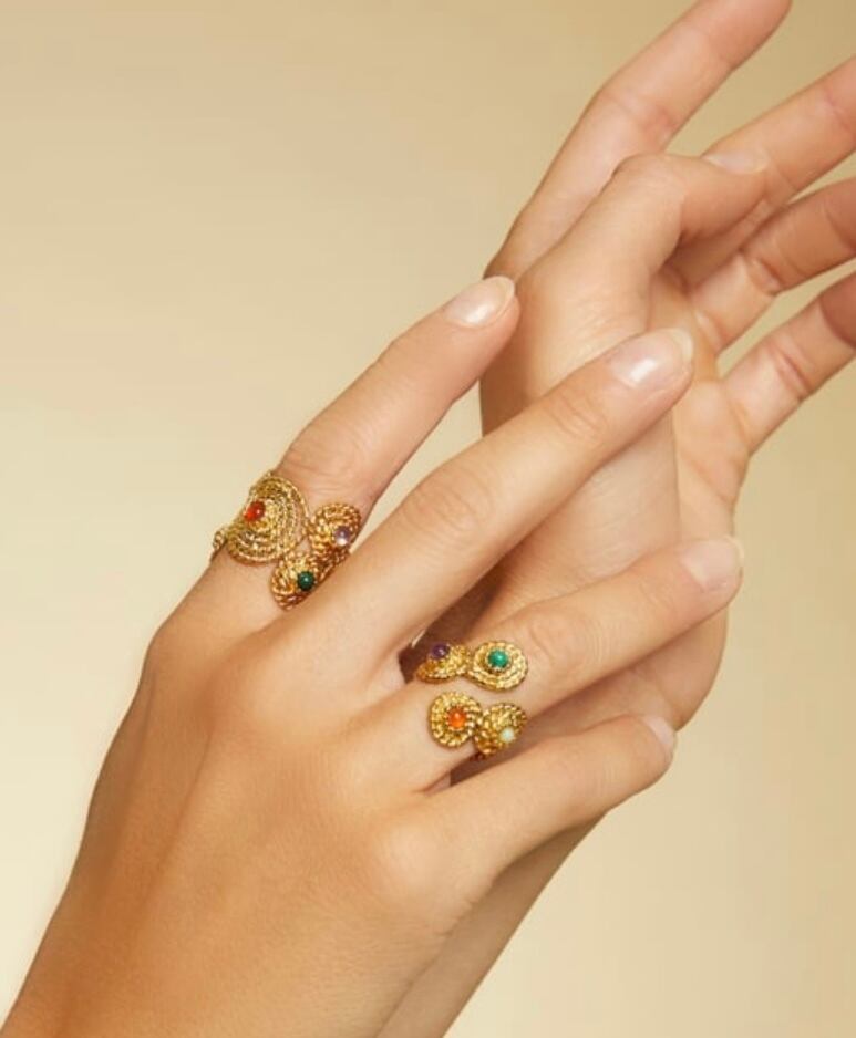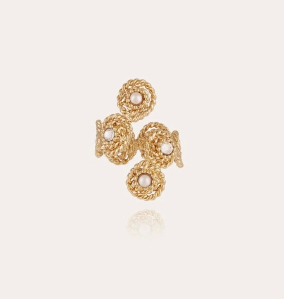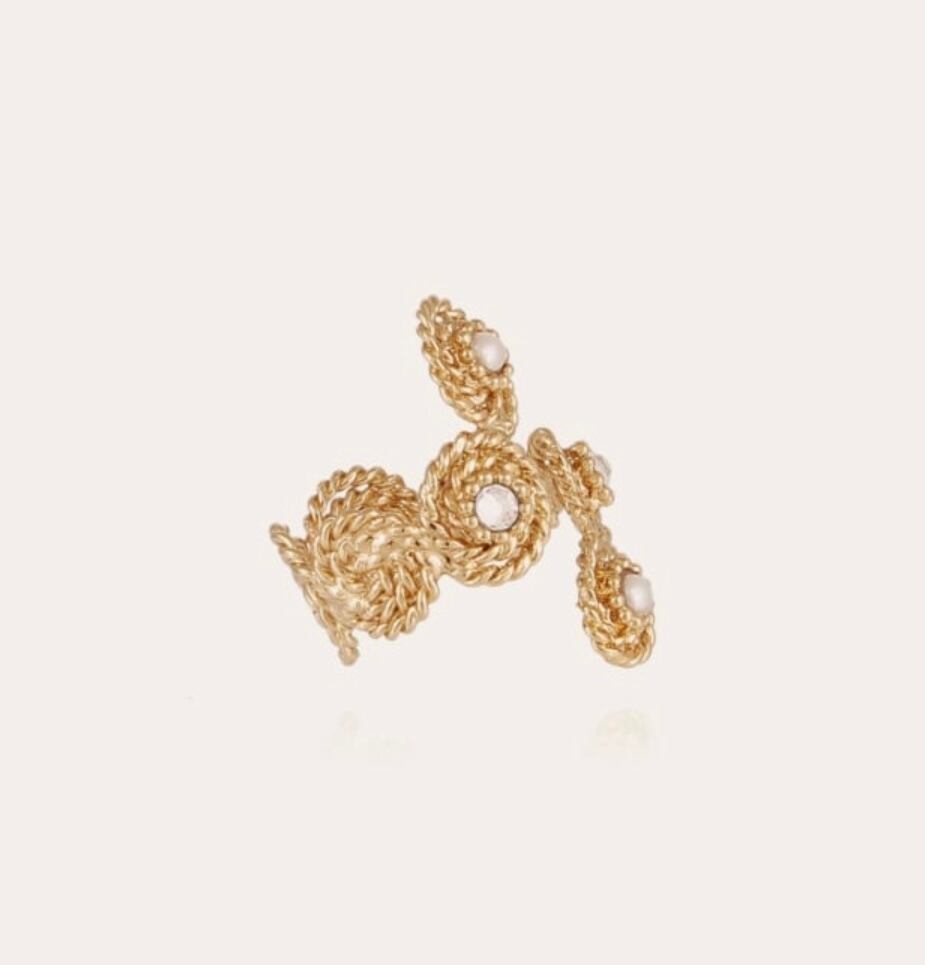 唯一無二のユニークなデザイン。 パールとストーンが散りばめられています。 サイズ調節可能です。 1番長い部分で長さ約3.2cm 着用画像は向かって右側タイプです。(他カラー)