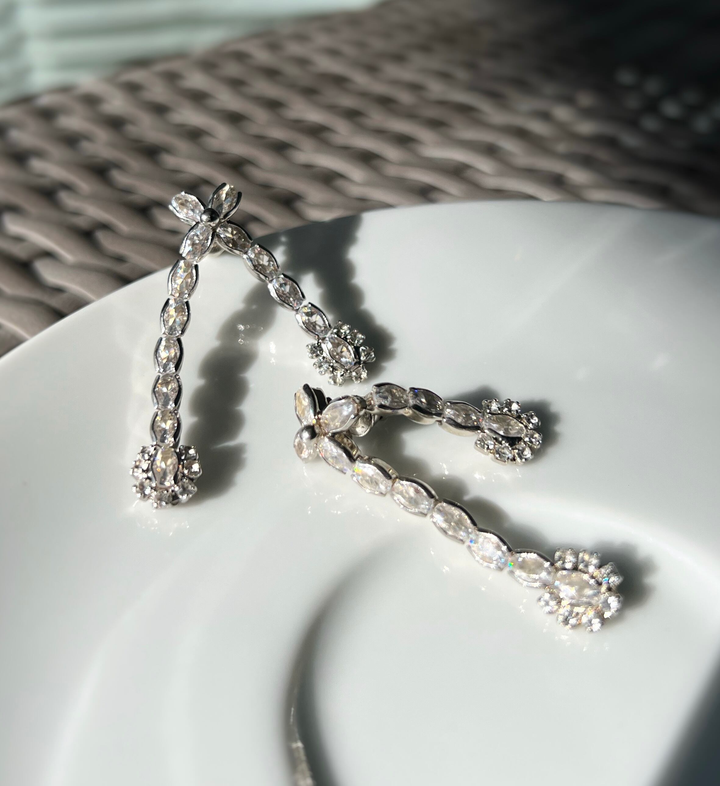 新しいコレクションのRIVIERAシリーズ。 トップの小花から美しく伸びた先に花のようなストーンが咲きます。 長さ約4.5cm