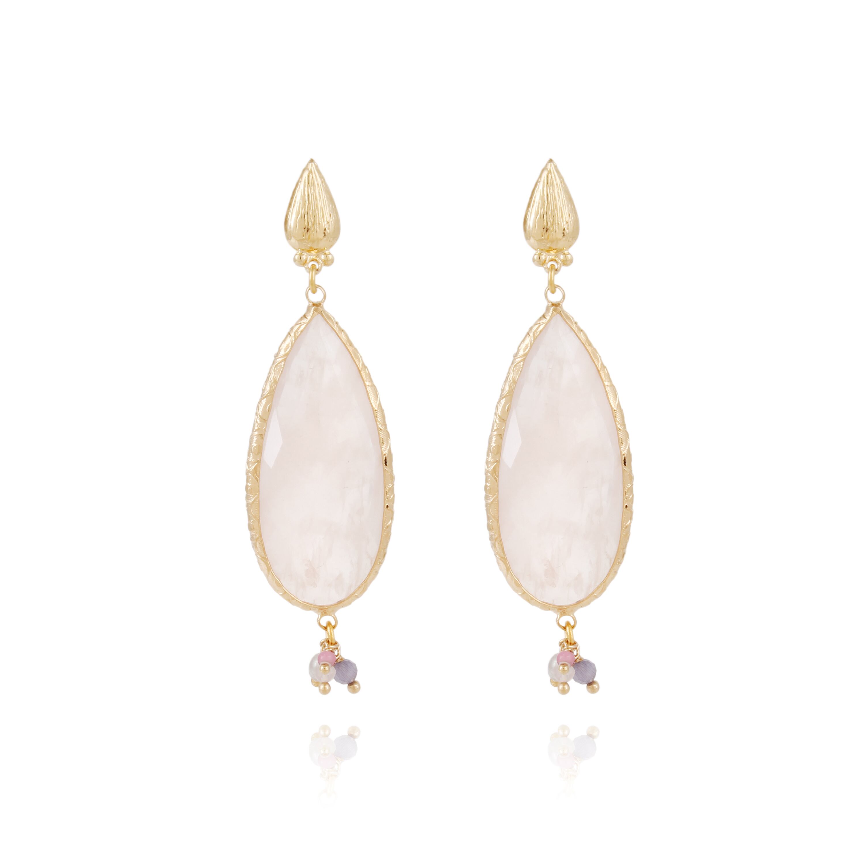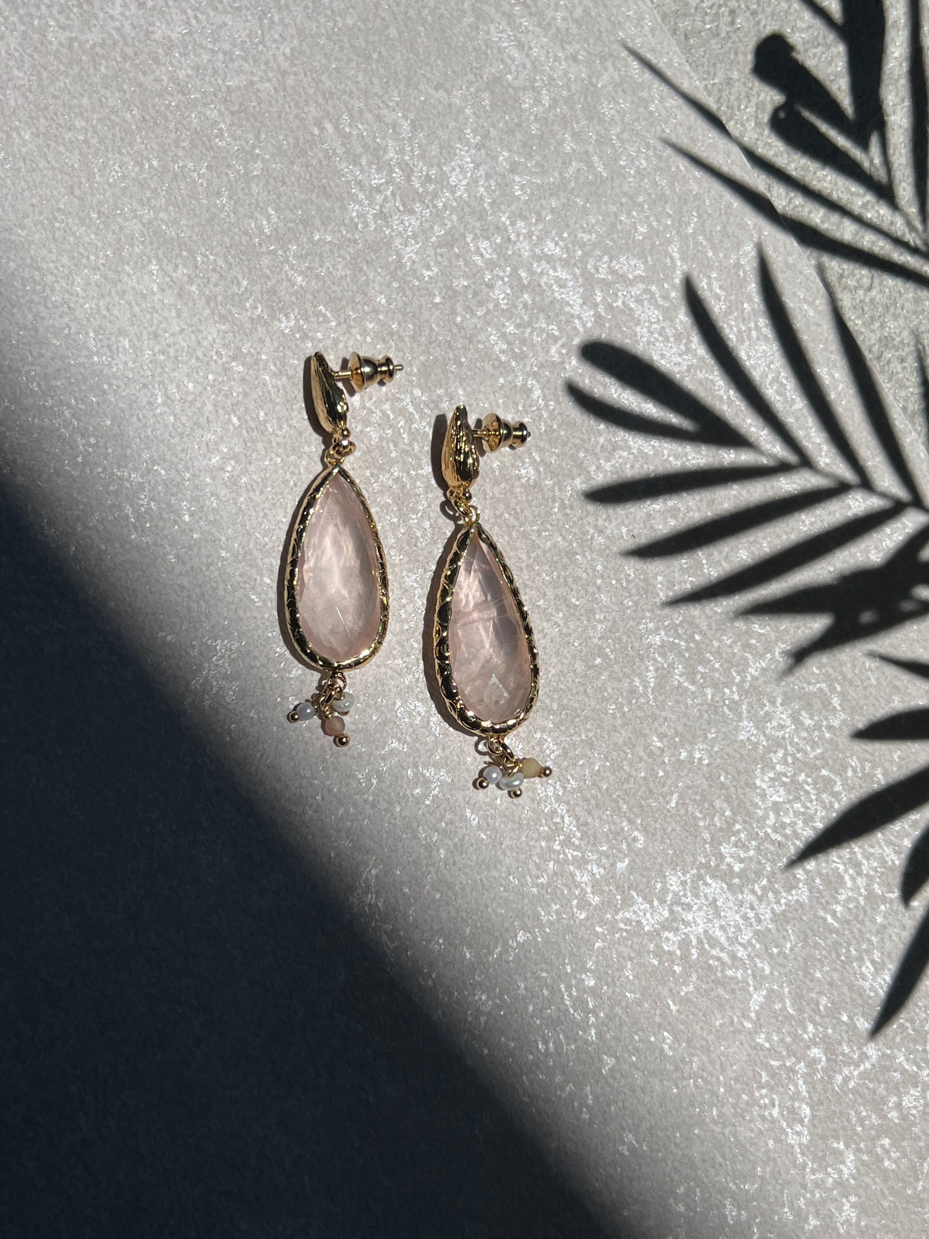 クリアな抜け感があるピンククォーツの天然石ピアス。 天然石なので全て一点物になります。 画像3枚目着用写真のカラーは別カラーになります。 実際の写真は2枚目です。 ポストはシルバーに24金です。