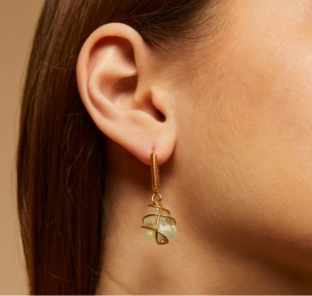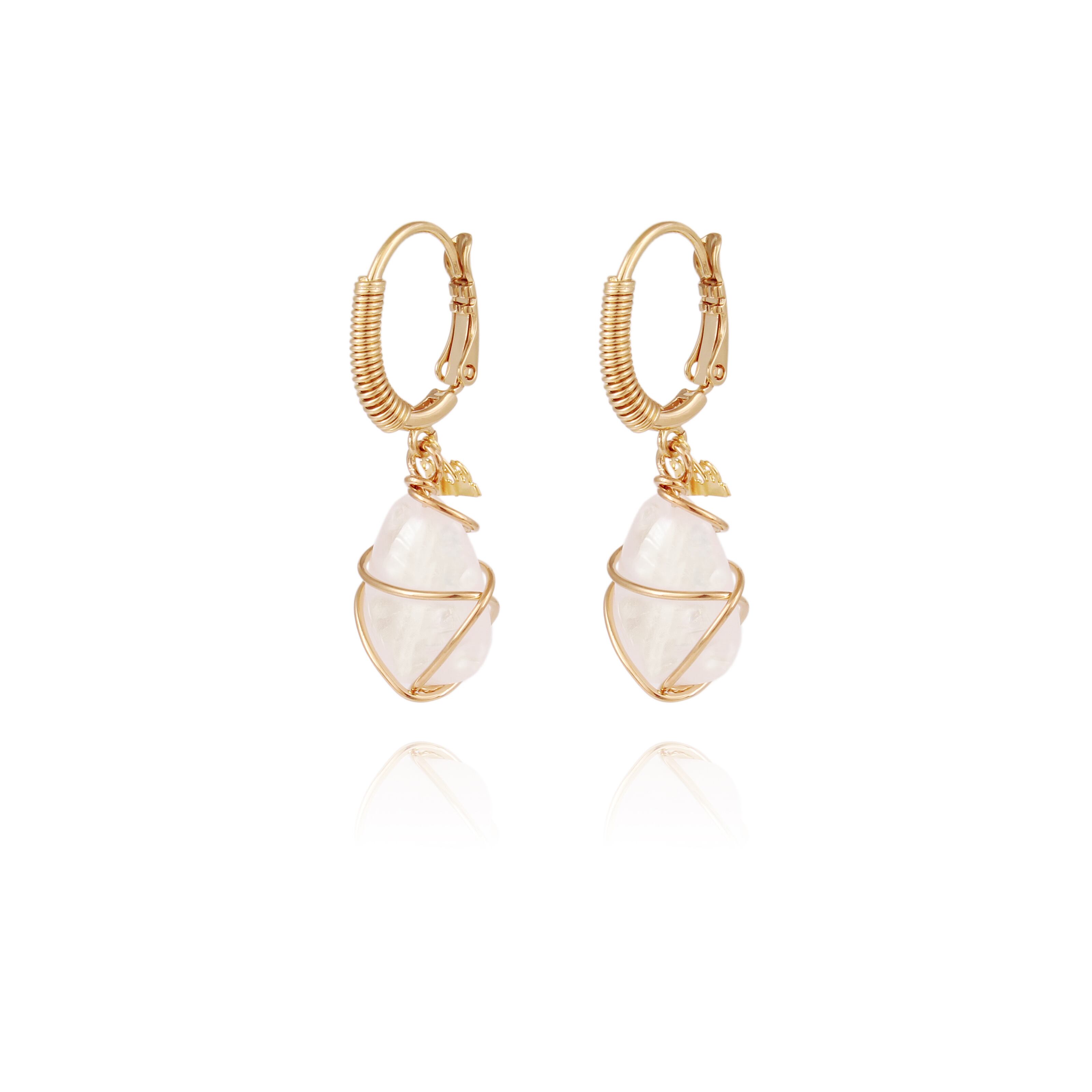 透明感が美しいクリスタル天然石のピアスです。 シンプルなデザインで天然石の美しさが際立ちます。 長さ4cm 素材:真鍮、24金 着用画像は他カラーです。