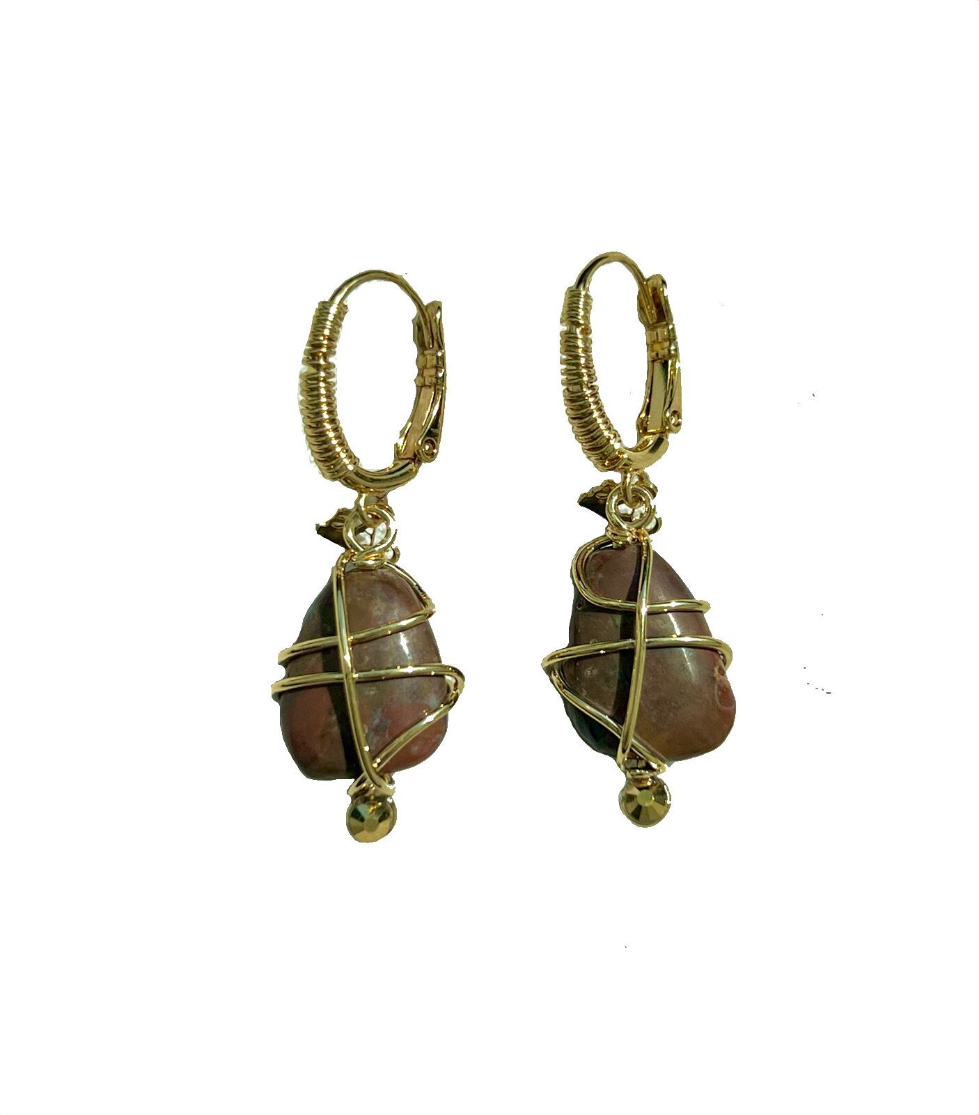 赤茶色の珍しいカラーのジャスパー天然石のピアスです。 シンプルなデザインで天然石の美しさが際立ちます。 長さ4cm 素材:真鍮、24金 着用画像は他カラーです。