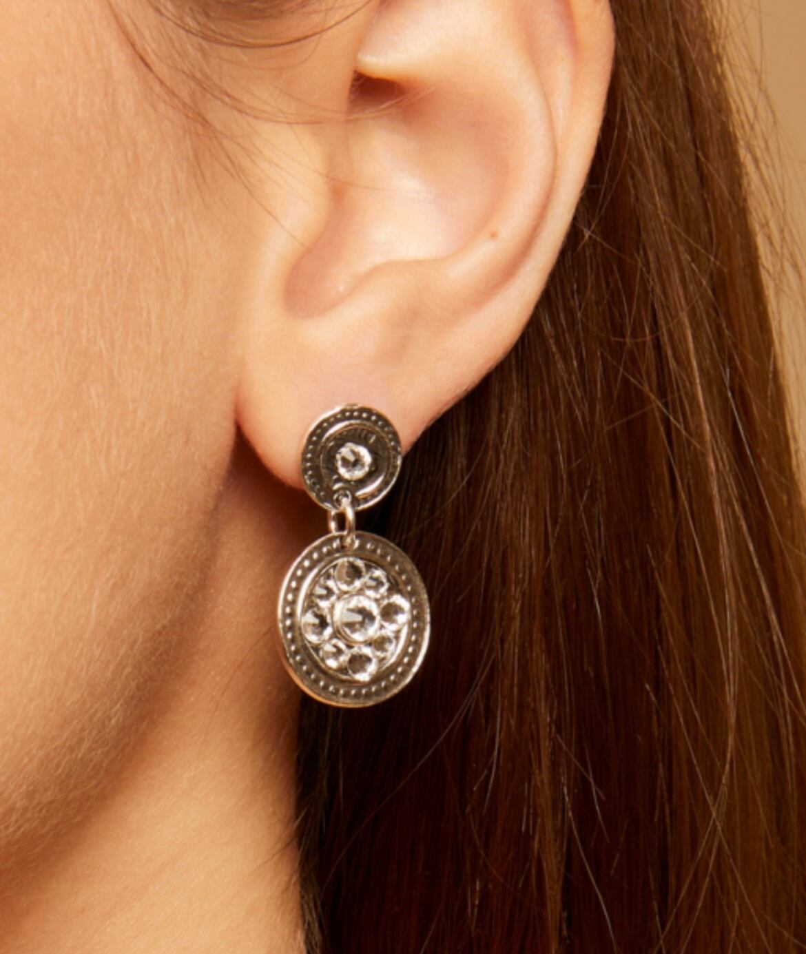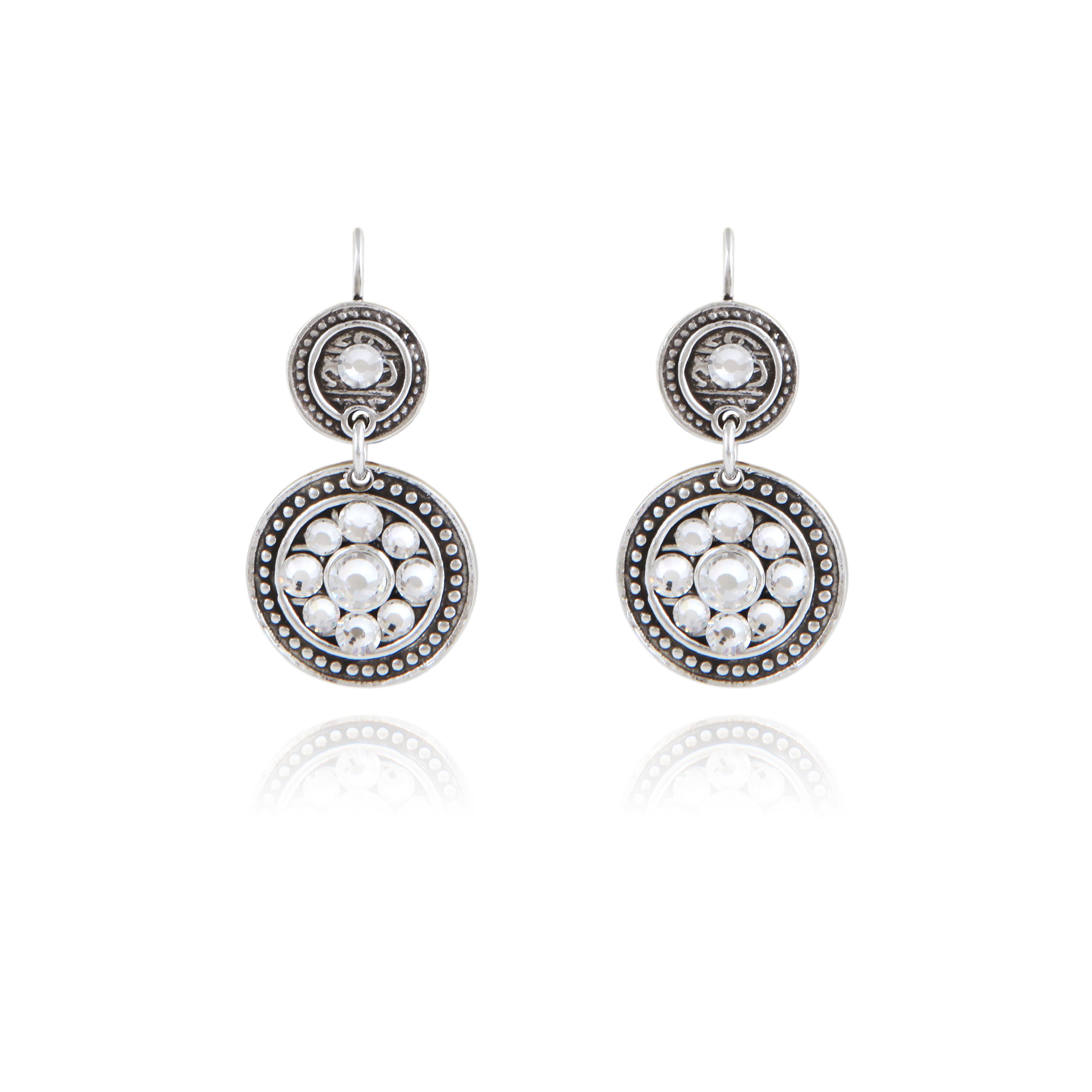 スワロフスキーを敷き詰めたピアスです。 一点ずつ手作業の一点物です。 長さ2.7cm 幅1.6cm ポストはシルバー、その他は真鍮にシルバーコーティングです。