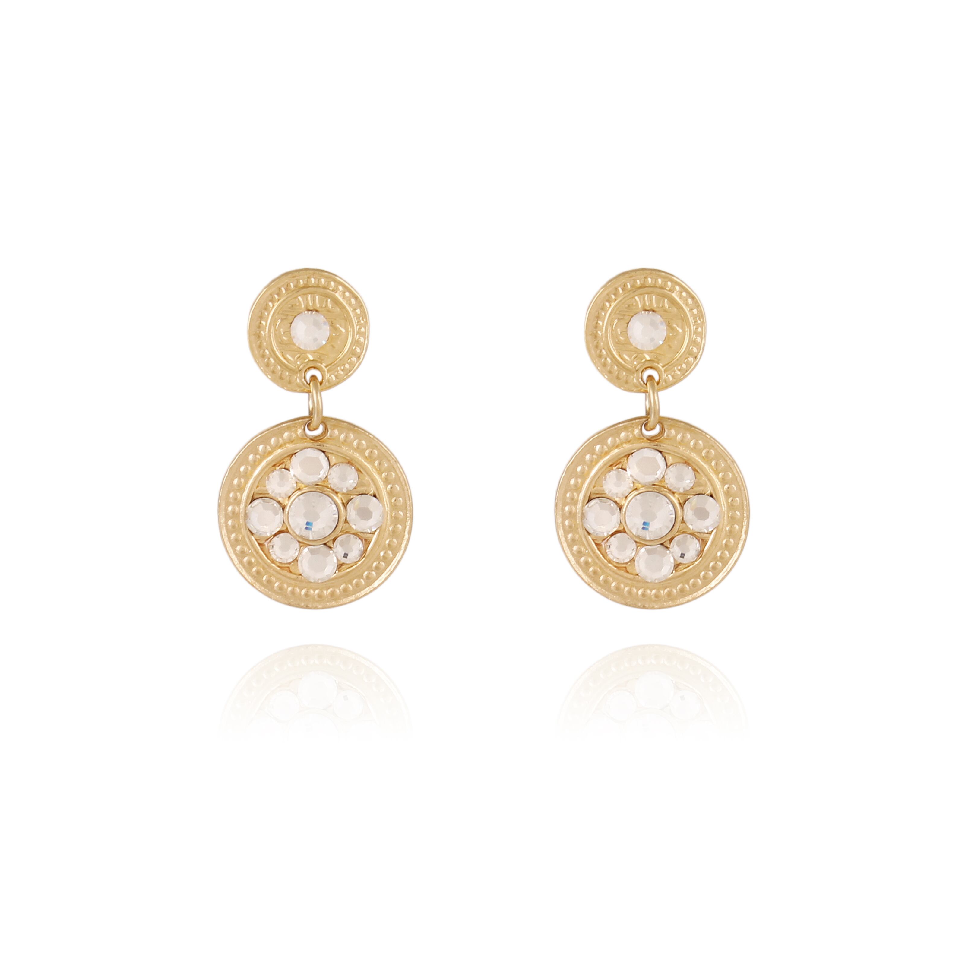 スワロフスキーを敷き詰めたピアスです。 一点ずつ手作業の一点物です。 長さ2.7cm 幅1.6cm ポストはシルバー、その他は24金コーティングです。