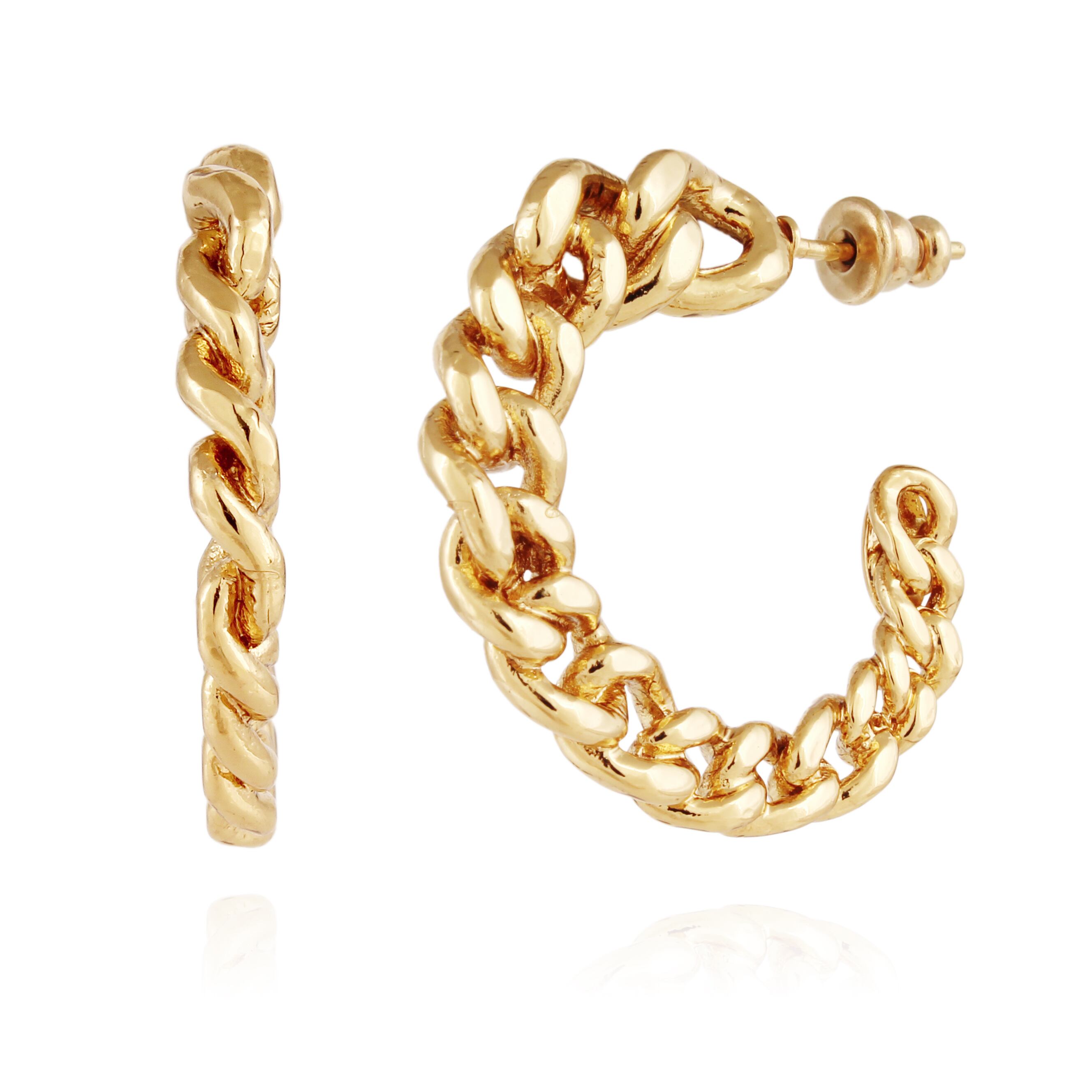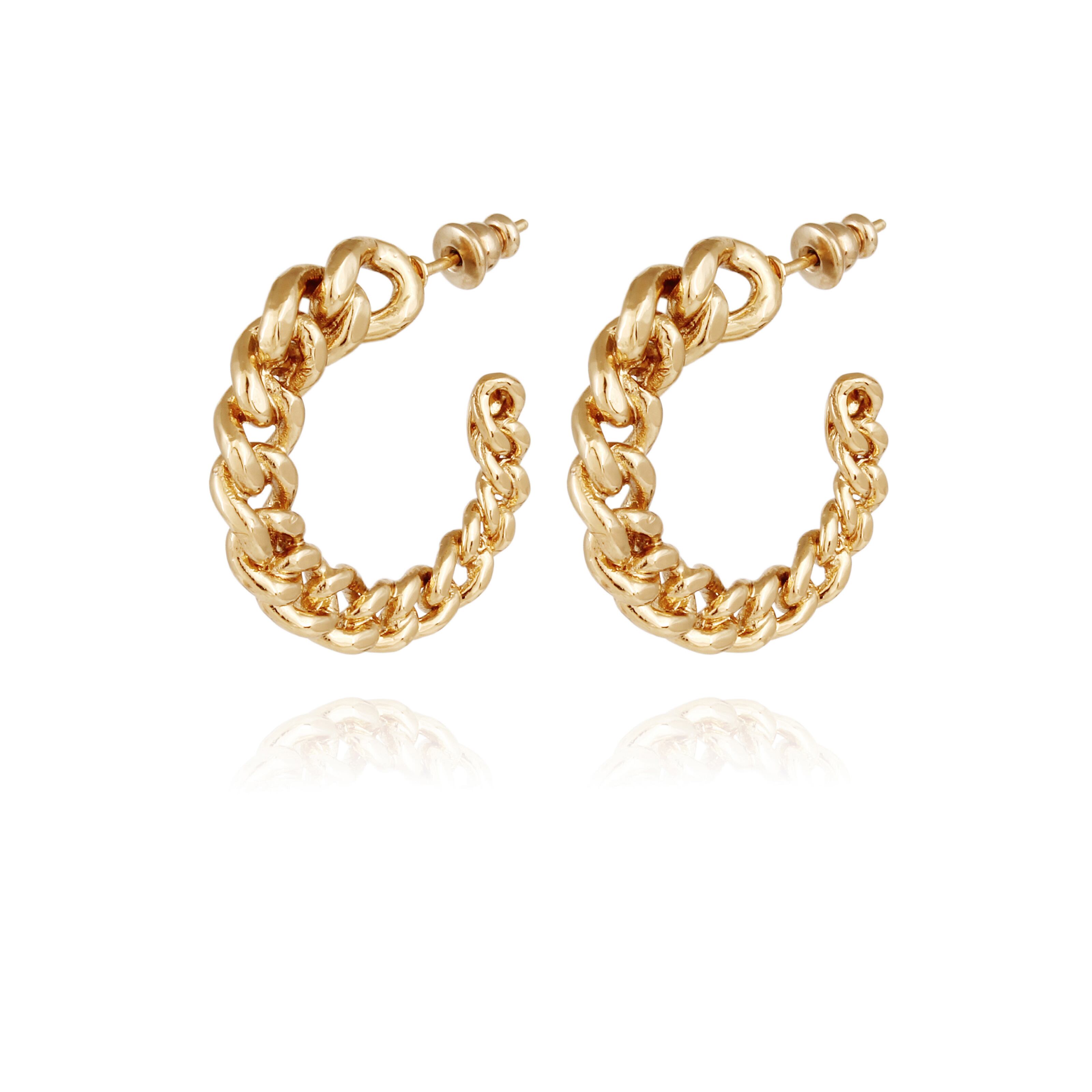 チェーンモチーフのフープピアスです。 薄くて軽やかなデザインです。 ポストはシルバーに24金、その他は真鍮に24金コーティングです。 直径3cm 厚さ0.3cm