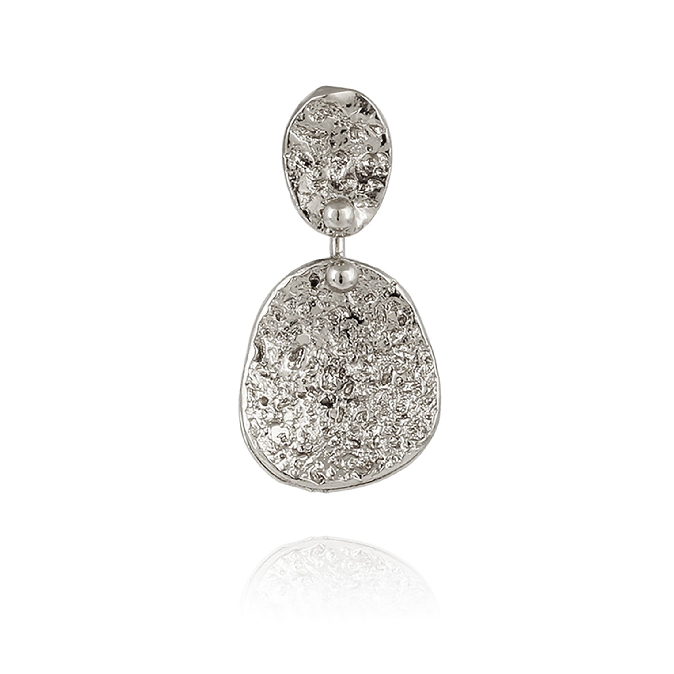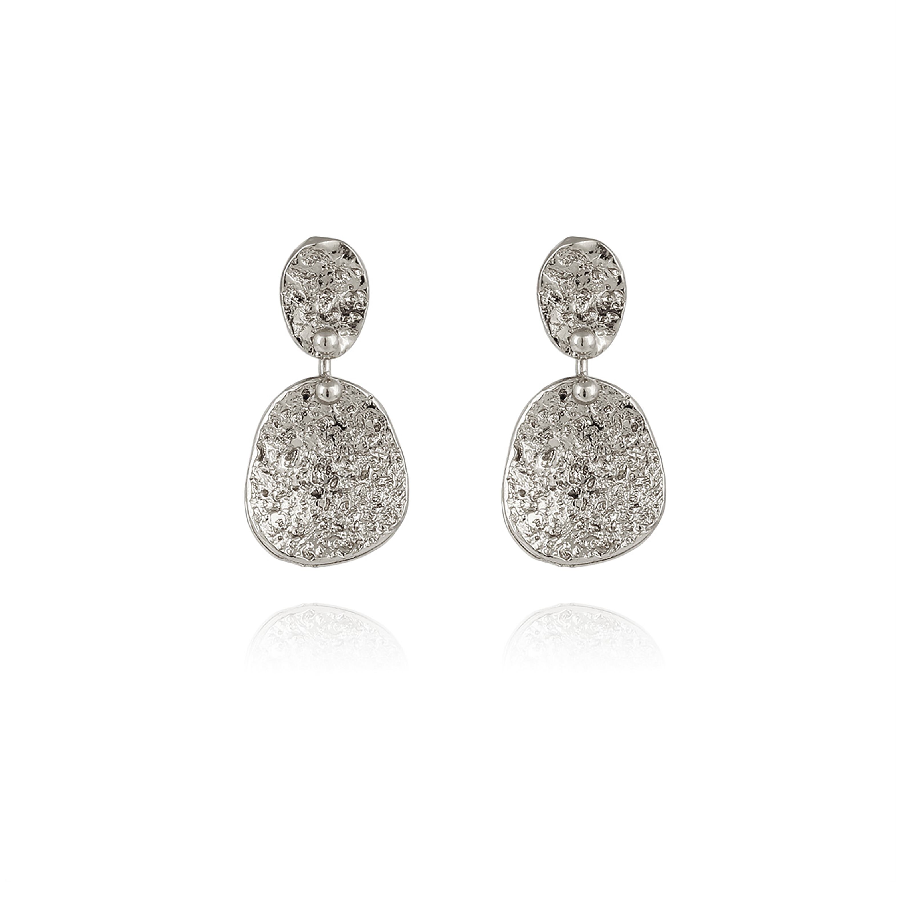 表面に凸凹加工を施したピアス。 光が当たると優しく輝きます。 ポストはシルバー、その他は真鍮にシルバーコーティングです。 長さ3cm 幅1.5cm