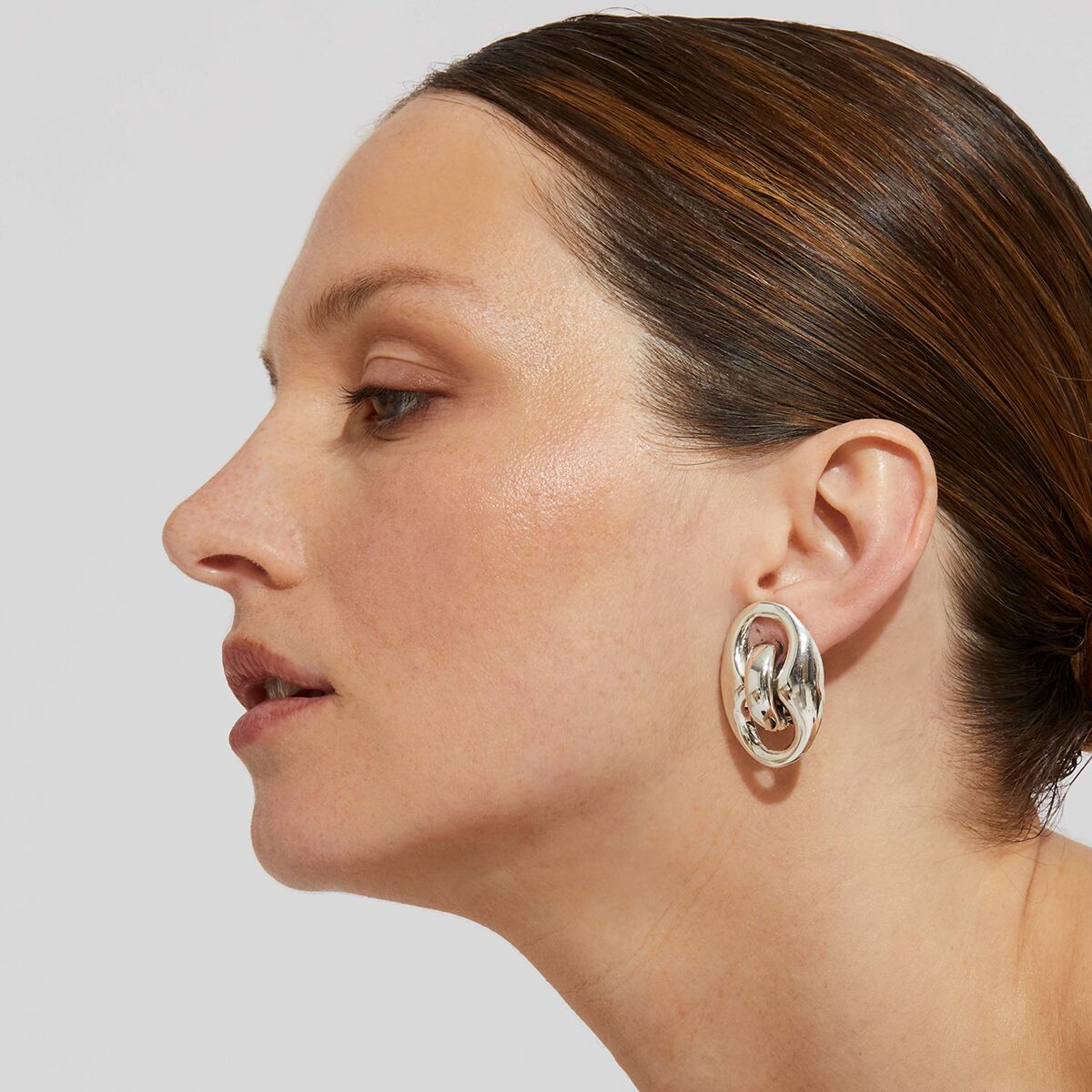 モダンなスタッズタイプのピアス。 わずか8gと軽やかにお付けいただけます。 縦3.5cm 幅2.7cm ポストはシルバー、その他は真鍮にシルバーです。