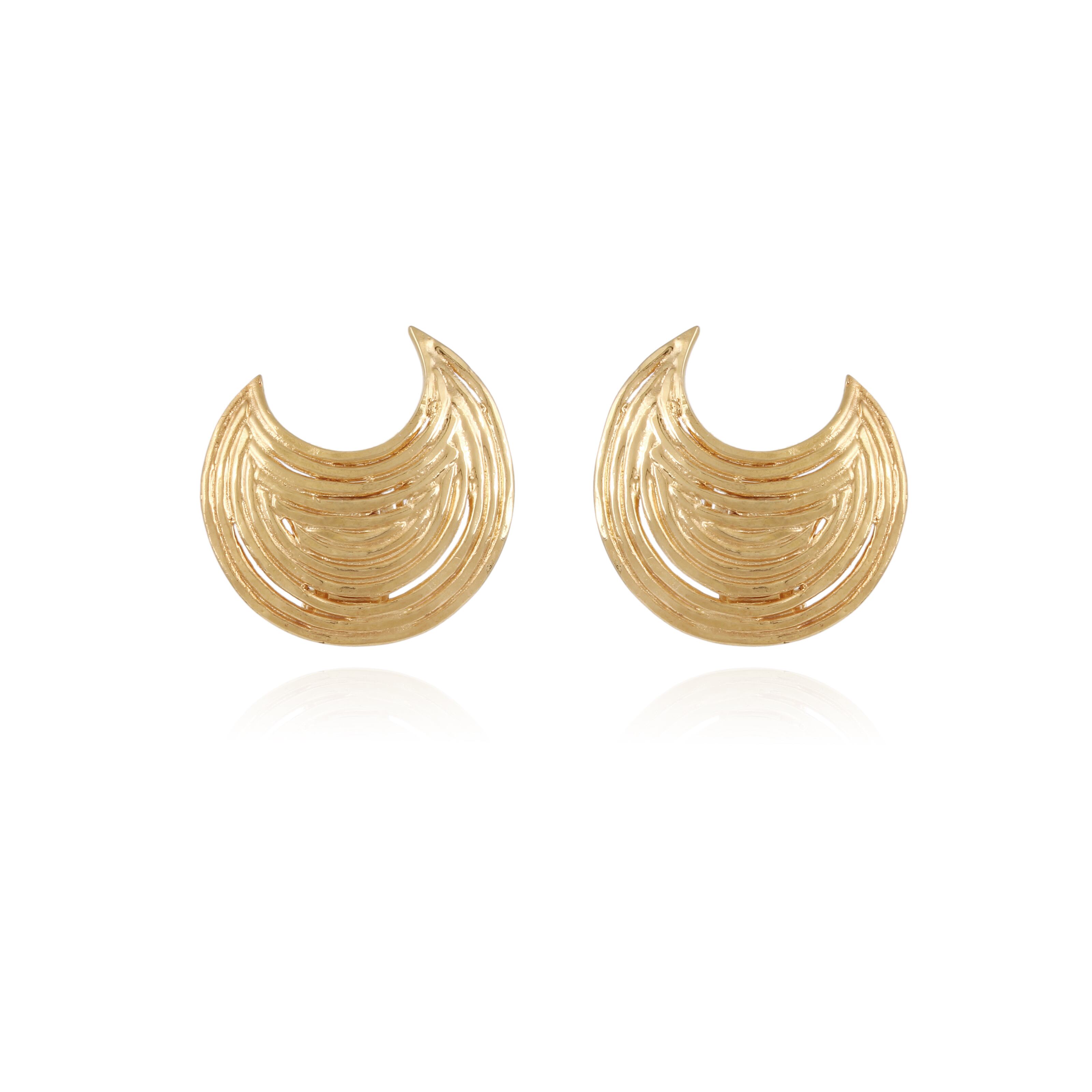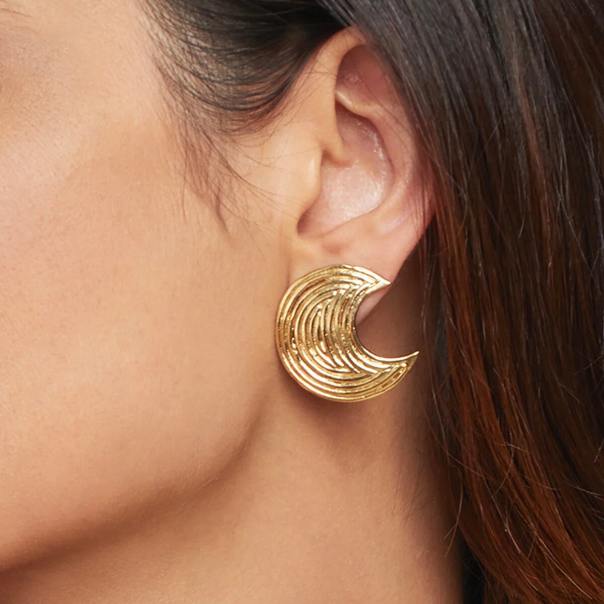 月デザインのスタッズタイプのピアス。 お好きな向きでお付け頂けます。 縦2.8cm 幅2.6cm ポストはシルバーに24金、その他は真鍮に24金です。